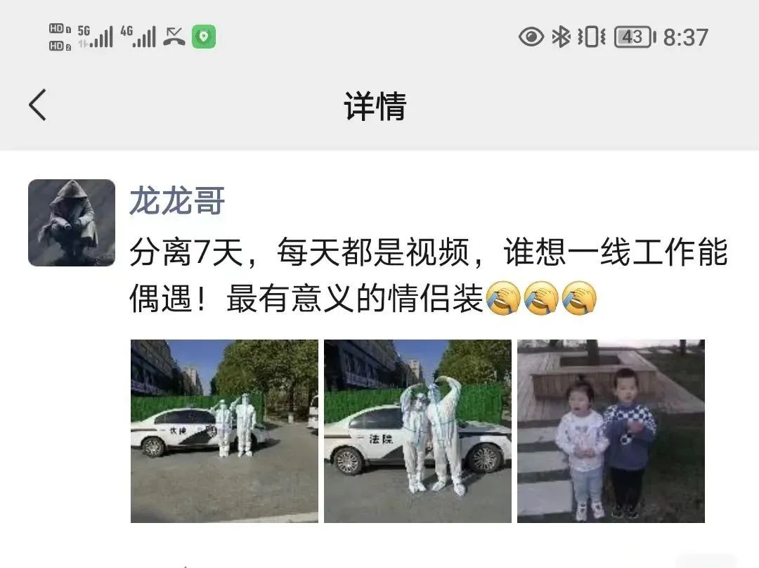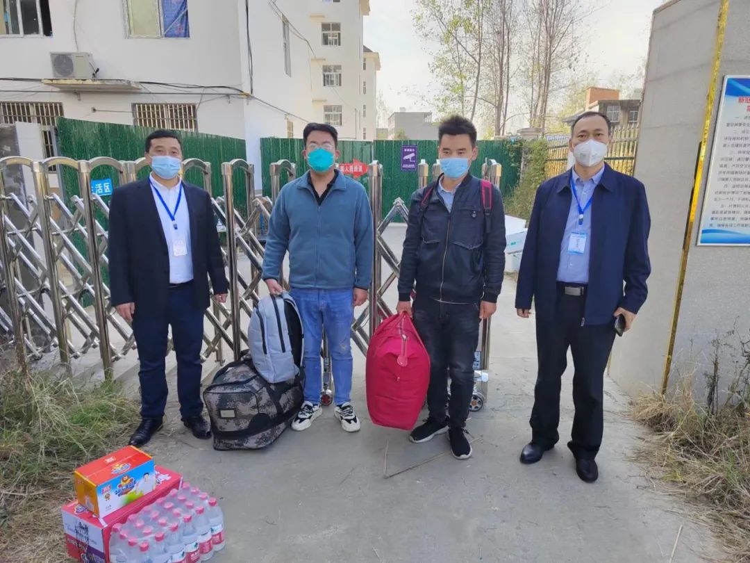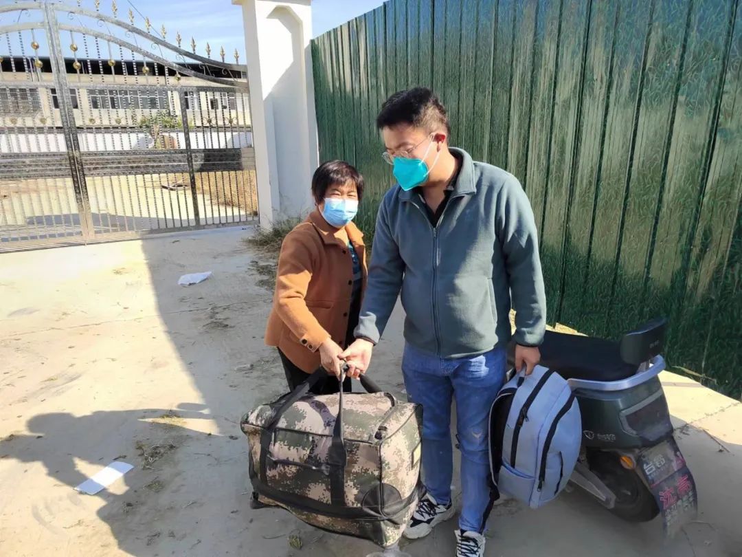 年纪相仿的张增辉和许松松,他们同时走出家门投身战“疫”。在单位他们是同事,在战线上他们是默契十足的最佳搭档。在送他们去台头隔离点时,我们看到了张增辉母亲送儿子时的依依不舍。在第二轮换班时,我们也才知道许松松的家属11月份的预产期,而此前他在进驻隔离点时却只字未提。他们默默无闻,却将90后法院干警的风采在疫情防控战线上展露无遗。