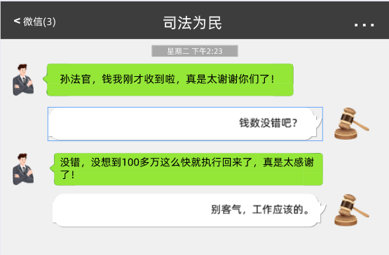 案件进入执行程序后,执行法官孙坎第一时间联系申请执行人李某了解案件来龙去脉,并向祖某等人送达了执行通知书、报告财产令等文书,敦促其主动履行生效法律文书所确定的义务,同时通过网络查控冻结了被执行人祖某等人名下100多个银行账户,但系统查询反馈显示,祖某等人账户资金不足。一番交涉无果后,执行干警对其采取了拘传措施。羁押室内,祖某等人依旧以各种理由拒绝还款,执行干警决定对其采取司法拘留,祖某等人在看到执行干警强硬的态度后,胆战心惊,最终当场履行100万元欠款,并承诺剩余欠款在一个月内履行。