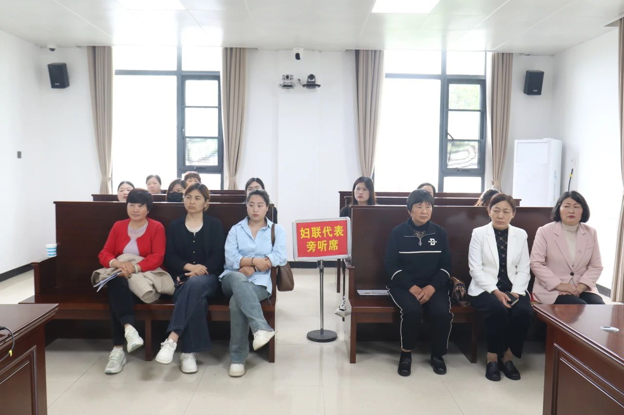 在马集法庭审判庭,县妇联副主席刘继红一行现场观摩了一起婚约财产纠纷案件庭审。庭审中,原、被告双方围绕案件事实及争议焦点进行了举证、质证以及法庭辩论,整个庭审过程井然有序。沈小平庭长以案释法,向旁听的妇联代表们宣讲了家事纠纷类型、审理程序等内容,让妇联代表们“零距离”体验婚姻家事案件审理过程。