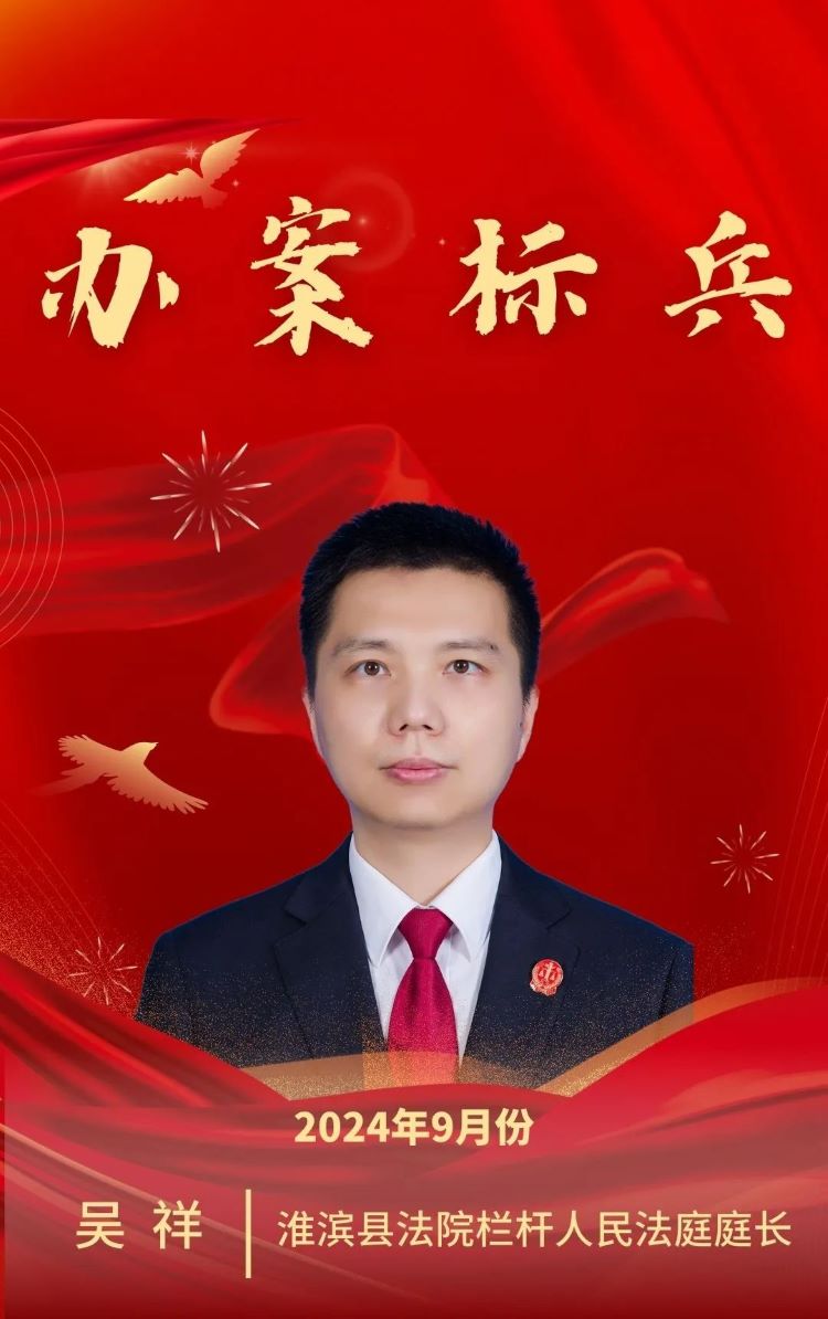 吴祥,淮滨县法院栏杆人民法庭庭长,1-9月份结案率95.04%,调解率50.61%。在办案过程中,他以精雕细琢的工匠精神,用心用情办理好每一起案件,努力让人民群众在每一个司法案件中感受到公平正义,以专业、敬业的扎实作风,赢得了群众和案件当事人的广泛好评。他坚持“有疑问、必答疑、有答复、必及时”,把释法明理工作贯穿诉前、诉中、诉后,既解当事人的“心结”,又让当事人在司法审判中感受到公平正义和温暖。入职多年,他始终在审判一线默默付出,在平凡的岗位上奉献着自己的青春和才华,用实际行动诠释着法官的忠诚与担当。