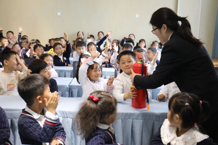 “什么是校园安全?”“遇到火灾怎么办?”法治课上,孙丹丹通过提问互动等方式,用通俗易懂的语言,深入浅出地为孩子们讲解了日常行为规范和与生活密切相关的消防安全法律知识,帮助孩子们从小树立法律意识,提高自我保护能力。为进一步增强孩子们的消防安全意识,孙丹丹走下讲台,与孩子们开展亲切互动,邀请孩子们认真观察了灭火器,学习灭火器的用途和小知识,引导孩子们强化自我保护意识,掌握自我保护方法,提升自我保护能力。