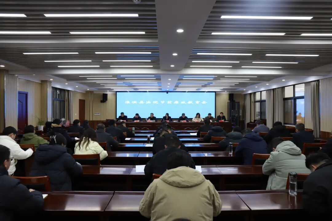 会议传达学习了习近平对做好“三农”工作作出重要指示、中共中央办公厅、国务院办公厅印发《关于做好2026年元旦春节期间有关工作的通知》、中共中央纪委印发《关于做好2026年元旦春节期间正风肃纪工作的通知》及县委十三届九次全体会议暨县委经济工作会议精神。会议通报了中央、省、市违反中央八项规定精神典型案例,县纪委监委派驻纪检监察组组长陈振中对与会干警作节前廉政教育集体谈话。