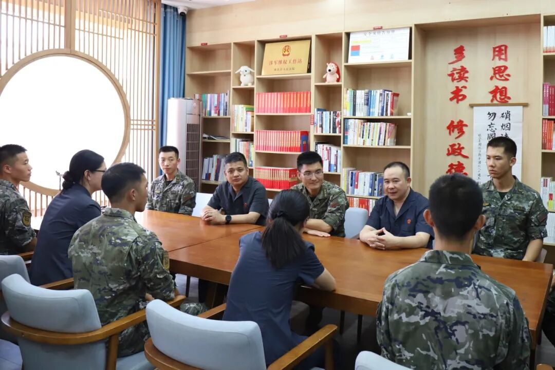 军有所需,法有所应。作为法院与驻地官兵沟通联络的枢纽,涉军维权工作站成立以来,淮滨县法院为驻地官兵提供了常态化、专业化、精准化的法治教育和法律服务。在本次活动现场,干警们与官兵们在涉军维权工作站围坐一堂,展开了一场氛围融洽的法治交流。官兵们根据自身及家庭遇到的现实法律困惑踊跃提问,涉及军婚保护、拒服兵役、婚约财产等内容,干警们耐心倾听、细致解答,不仅提供明确的法律依据和解决路径,还结合审判实践分享了风险防范技巧和维权策略。面对涉及具体纠纷的“疑难杂症”及后续疑问,干警们还进行了详细记录,并留下涉军维权联系方式,确保能够及时解决驻地官兵的法律需求。