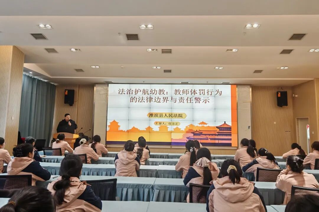为进一步加强校园法治建设,提升幼儿教师法治素养与安全风险防控能力,近日,淮滨县法院干警走进淮滨县第二幼儿园,为全体幼儿教师带来一场针对性强、实用性高的法治课堂,将法律知识与幼教工作实际紧密结合,为幼儿教师穿上“法治防护服”。