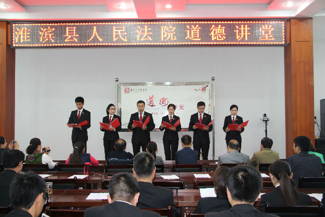 为扎实推进社会主义核心价值体系建设,增强思想道德建设的吸引力和亲和力,吸引全院干警投身道德实践活动,不断提升全院干警思想道德修养和社会文明程度。按照县文明办的统一部署,我院于4月29日成功举办了淮滨县法院道德讲堂活动。
