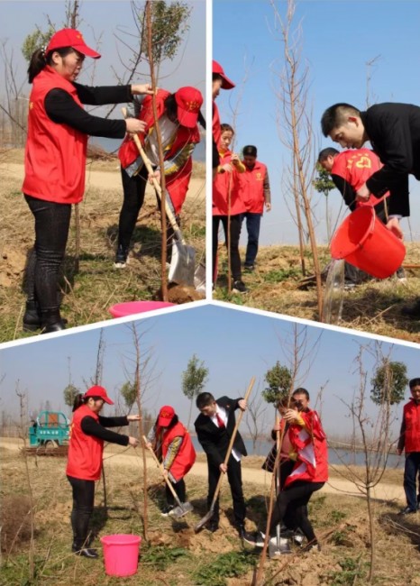 活动结束后,淮滨法院志愿者与亲手栽下的树苗一起合影留念,共同记录下这美好的时刻。
