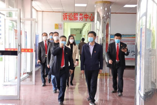 3月23日,淮滨县委常委、政法委书记方军平到县法院调研指导工作,县法院党组书记张楷永、县政法委副书记刘玲、李峰陪同调研。